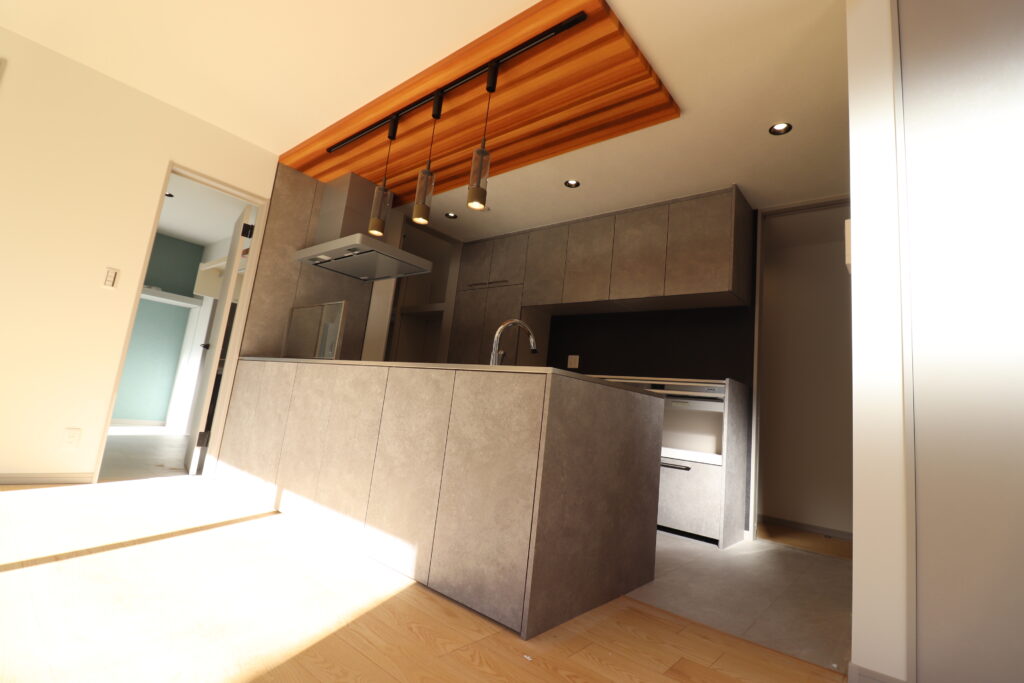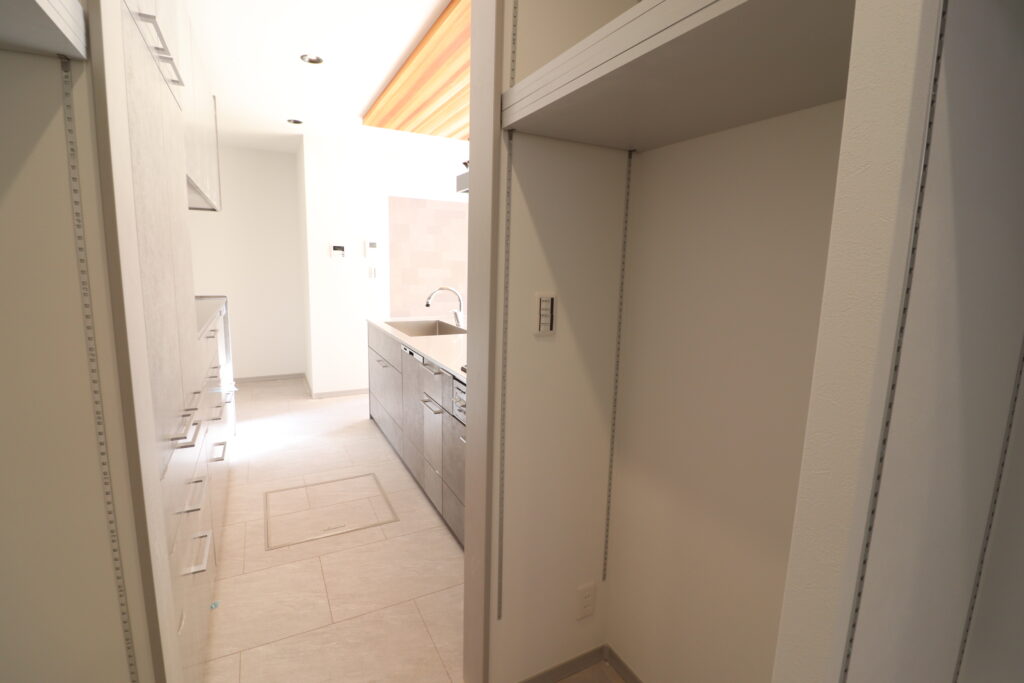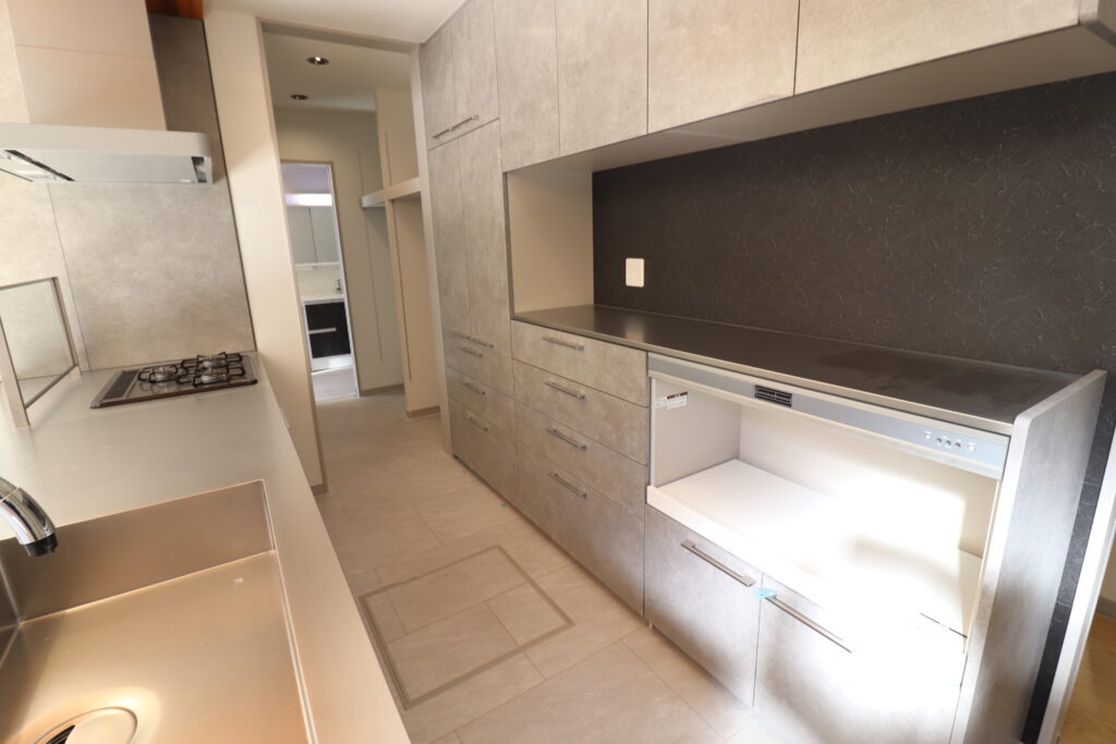 (グースネックシャワーヘッド・食器洗い乾燥機付・背面収納付)